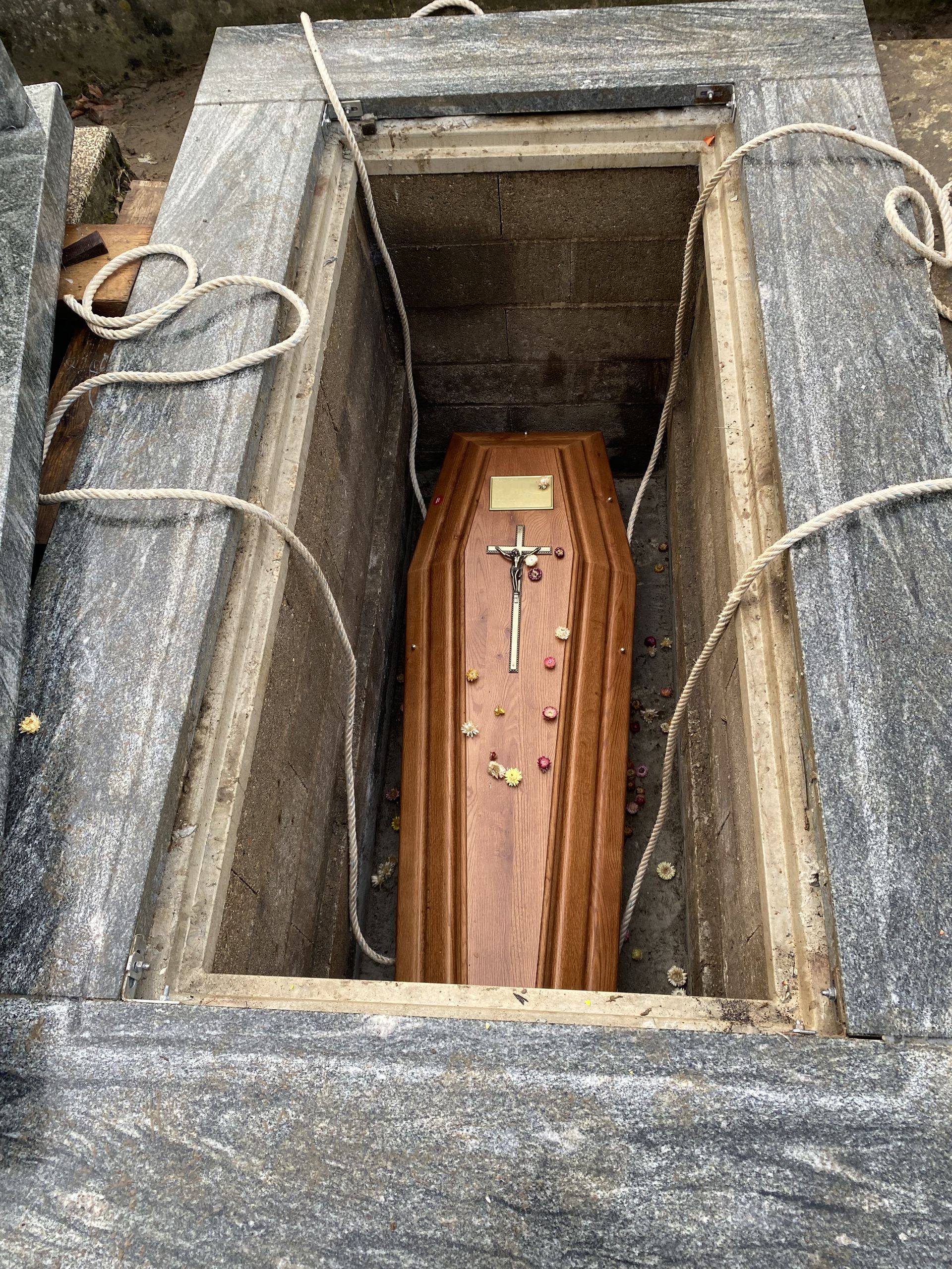 L’inhumation à la corde est une méthode traditionnelle permettant de descendre le cercueil en douceur dans la sépulture. Réalisée avec précision et respect, elle garantit un geste maîtrisé et solennel, assurant la sécurité des intervenants tout en préservant la dignité du moment.