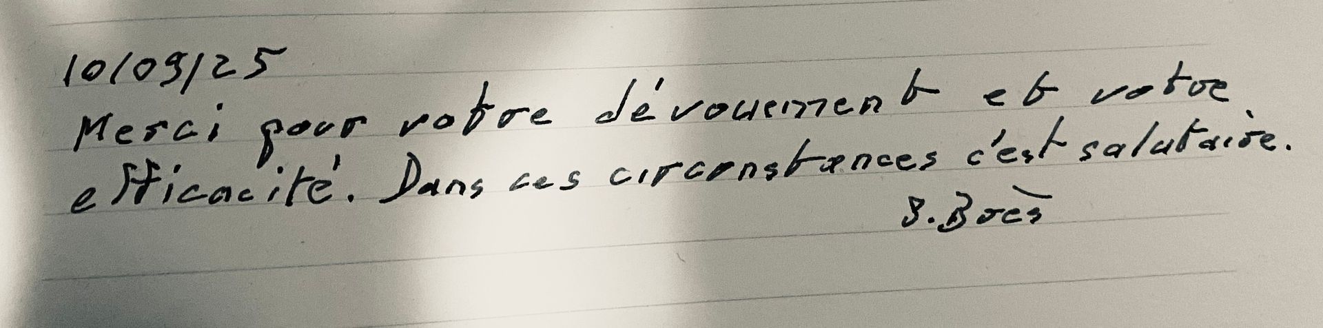 Merci pour la gravure et pour toutes vos démarches et actions faites par vous ou Alain.